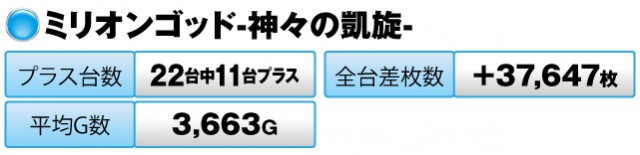 パチスロでは、ここのところ新顔に押され気味だった『ミリオンゴッド-神々の凱旋-』が本気を見せた。