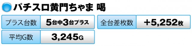 5台中3台がプラスで全台差枚数は+15,068枚だった。