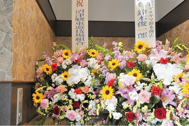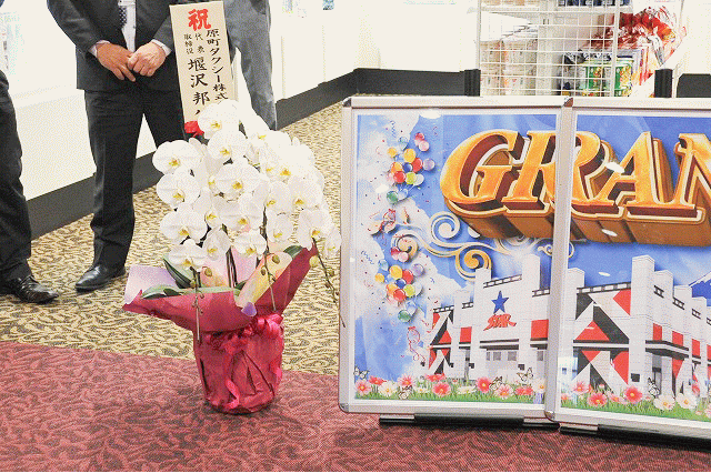 | いたる所に祝いの花が。文字通りグランドオープンに華を添えている | |