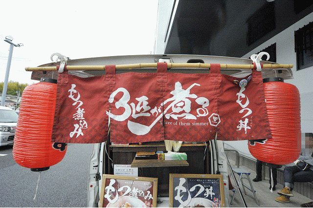 入り口前では、「三匹が斬る!」ならぬ「3匹が煮る」にて、なんとも食欲をそそる“もつ丼”と“もつ煮込み”が販売されていた。