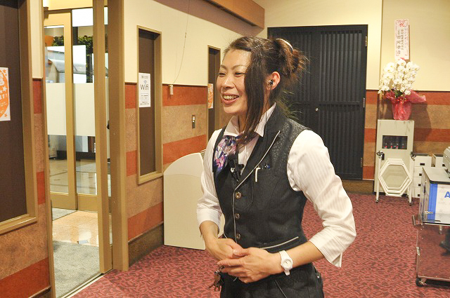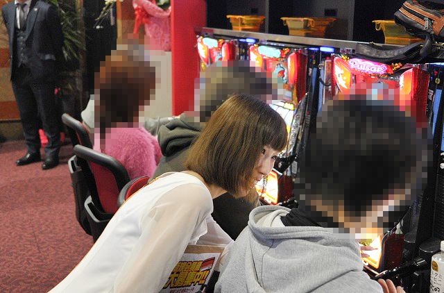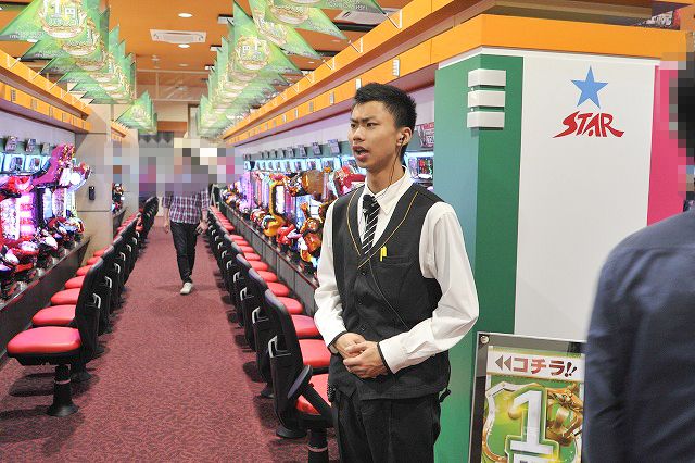 終始笑顔の親しみやすい接客で、ファンの遊技をサポートしていた。