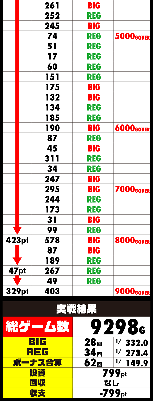 BIGとREGの回数がバランスよく伸び、最終的には60回を上回るデータが残っていた。