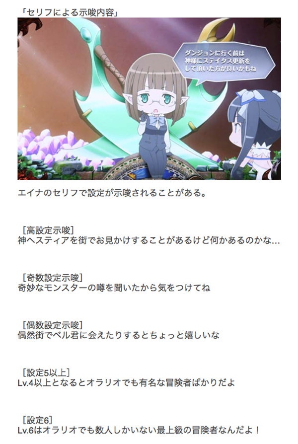 ▼「パチスロ ダンジョンに出会いを求めるのは間違っているだろうか」設定推測ポイント▼