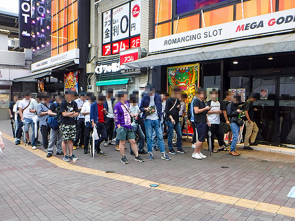 開店前から120人を超えるプレイヤーが足を運んでおり、遊技開始を前にして、高揚した表情を見せていた。
