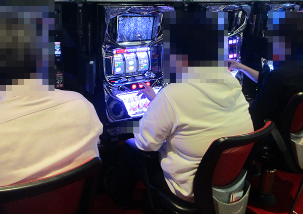 まず1階をみると、パチンコとパチスロの両方でプレイヤーがパフォーマンスを披露。たくさんの場所が明るいムードに包まれていた。