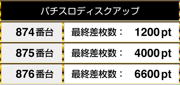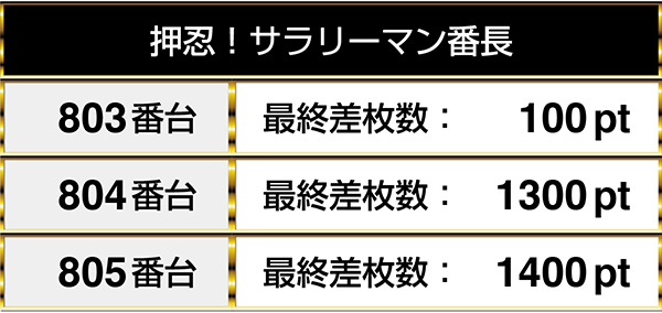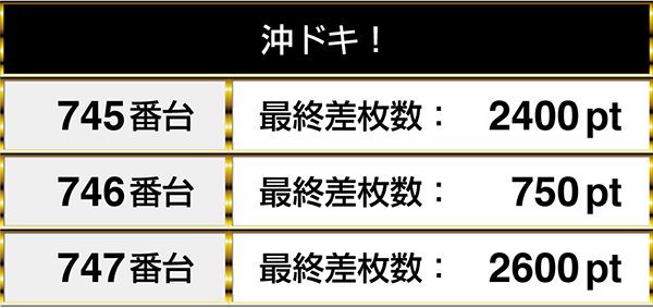 3台並びでプラスptとなっている場所があり、1台は3000ptを記録!!