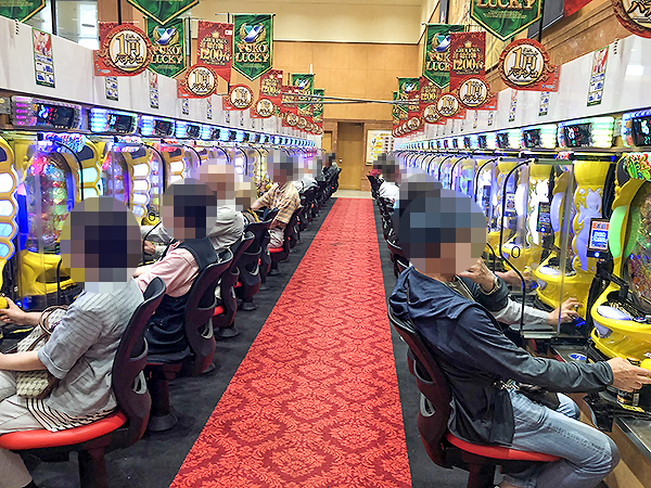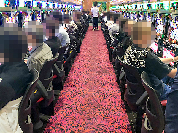 取材時の店内には既に多くのプレイヤーが集結し、パチンコ・パチスロを問わずにぎやかな状況となっていた。