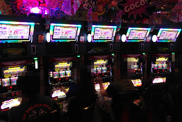 大にぎわいとなっているホール内で、9機種設置のジャグラーシリーズがひときわ盛況!