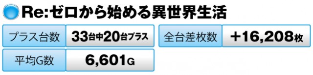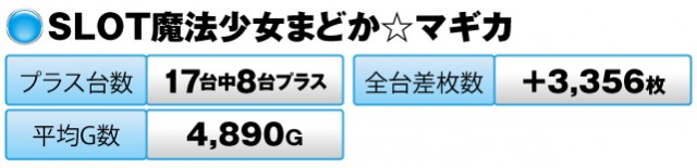 33台のうち半数以上の20台がプラスで、全台差枚数は+16,208枚を記録した。