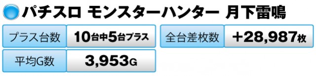 パチスロでは、過去に何人もの英雄を送り出している『パチスロ モンスターハンター 月下雷鳴』が、またまたその実績を積み上げた。