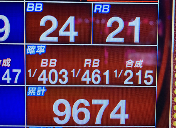 午後にはいってからはボーナス獲得のスピードがダウン。