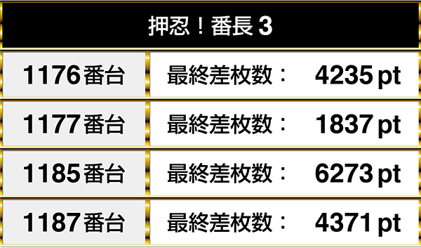閉店時のデータでは、プラスptが連なっている場所もあった。