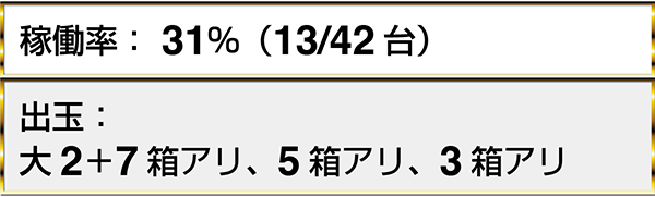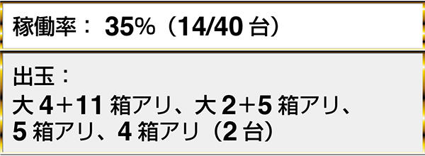 『ぱちんこCR真・北斗無双』や『CRバジリスク〜甲賀忍法帖〜弦之介の章』などを含めた3機種以上で、大2箱を上回る出玉を確認した。