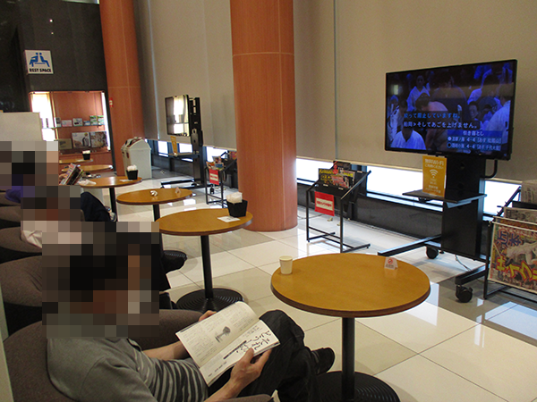 喫煙と禁煙で席がわかれている休憩スペースも魅力的。雑誌を読んだり、テレビをみたりと、しっかりとリフレッシュできそうじゃ!
