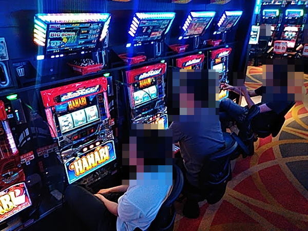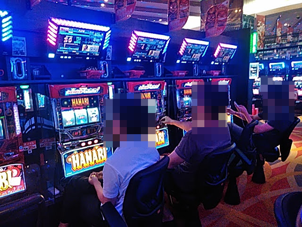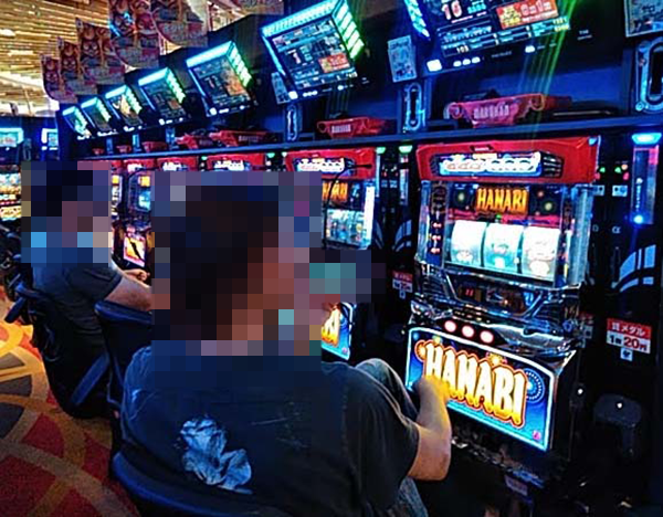パチスロコーナーを進んでいくと、「ハナビ」にて楽しげな様子のプレイヤーが目に映った。ニコニコとうれしそうな表情でレバーを叩いている姿がみられ、感じられた雰囲気はとても明るい。
