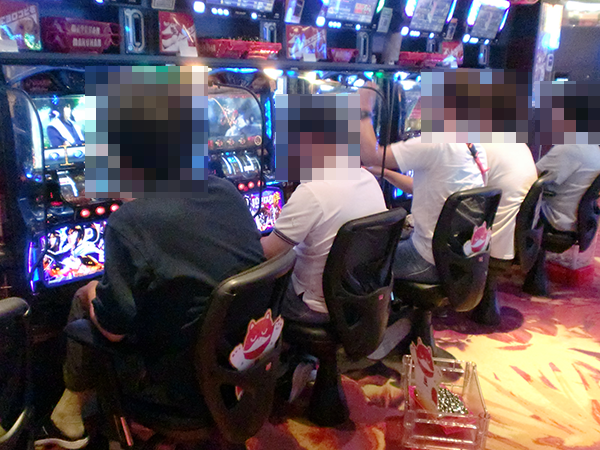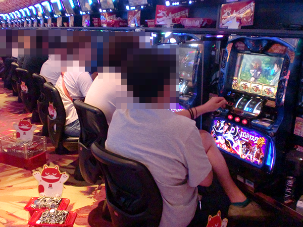 パチスロのなかで、とくに興味をひかれたのは「バジリスク~甲賀忍法帖~絆」だ。イキイキとした表情でレバーを叩いている姿が多く、明るいムードに包まれていた。