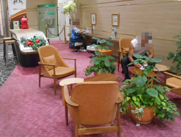 観葉植物が置かれているレストスペースやおなじ敷地にある飲食店なども魅力的。ひと息つける空間があることも、プレイヤーの笑顔につながっているのだろう。