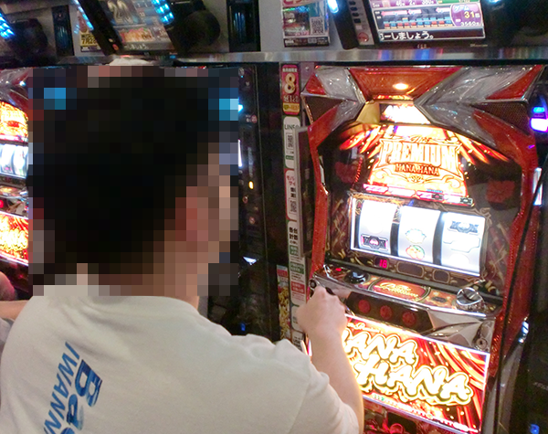 パチスロコーナーに足を踏み入れた瞬間に目をひかれたのは『プレミアムハナハナ‐30』!