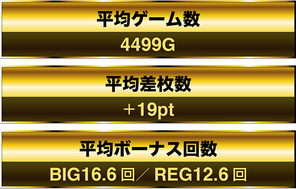 また、最終的な平均ゲーム数は4499G、平均ボーナス回数は約29回であった。