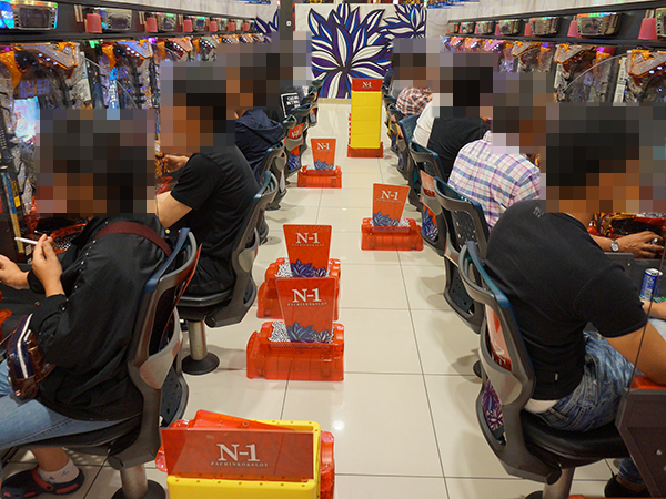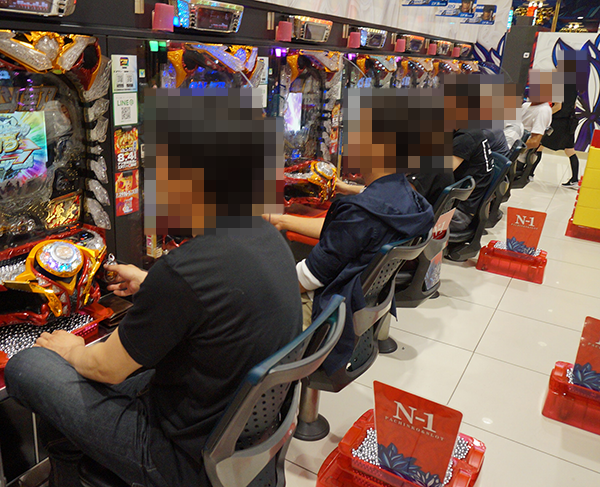 パチンココーナーでは、海物語シリーズをはじめとした定番機種が人気を集めていた。いずれも設置台数が多いにもかかわらずに高稼働であり、機種の魅力を味わうようなプレイヤーが並んでいた光景は壮観だ。
