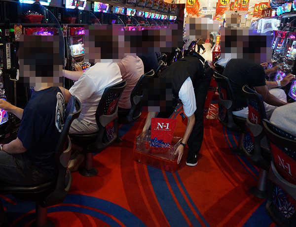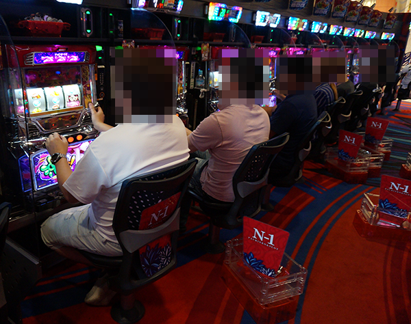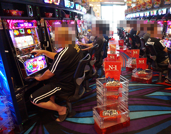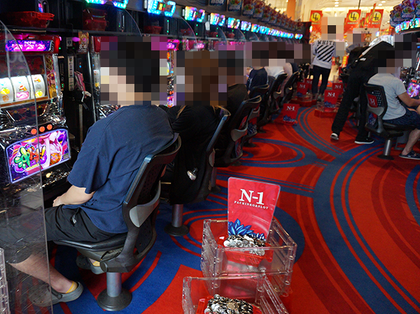 台間が広めのシマも多い「エヌワン西新発田店」。リラックスできているような姿勢のプレイヤーも多く、ひとりひとりがのびのびと過ごせていると思えた。