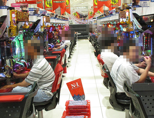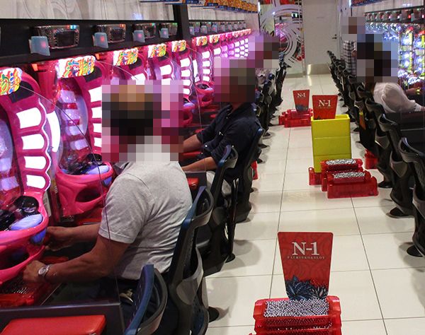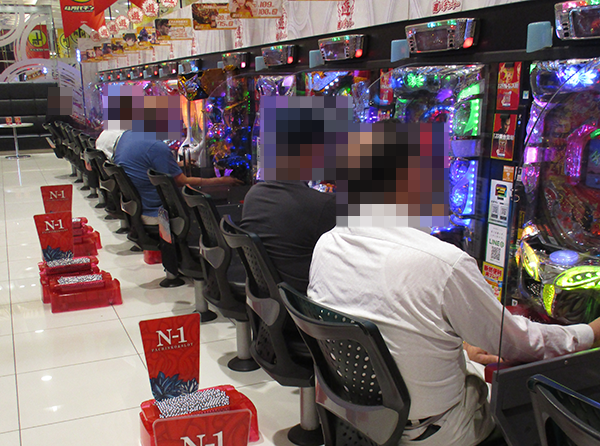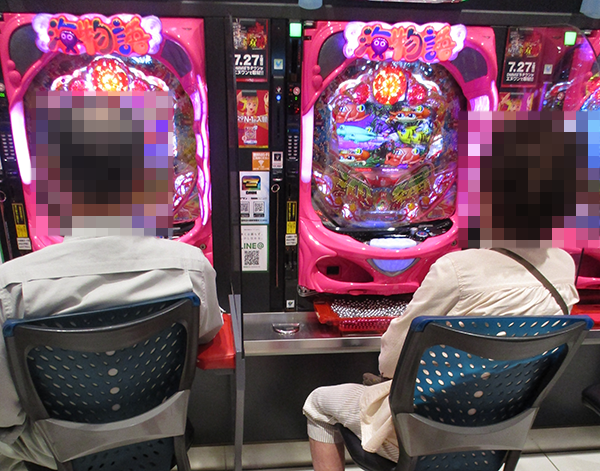 確認時は4人のプレイヤーが遊技をおこなっており、全員が楽しそうにしていたことを覚えている。稼働している台をみていくと、どの台にも笑顔が広がっていた。