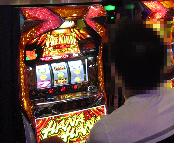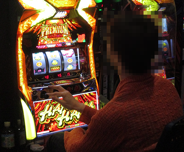 確認時に稼働していたのは2台。ほかのシリーズ機にもっと稼働率が高い機種はあったが、とくに華やかな雰囲気なのは「プレミアムハナハナ‐30」であった。稼働率以上の盛り上がりをみせていたイメージだ。
