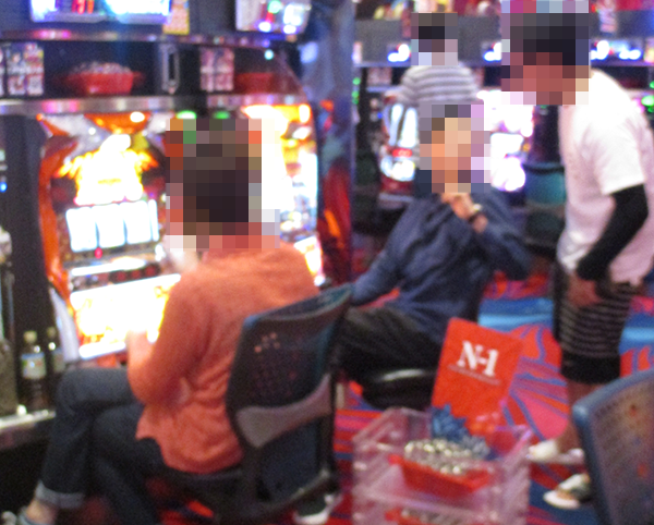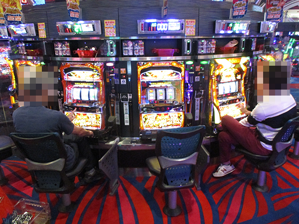 各シマに目を向けていき、活気を感じたのはハナハナシリーズが設置されている場所だ。3機種のシリーズ機があり、いずれにもイキイキと遊技をおこなう姿がみられた。