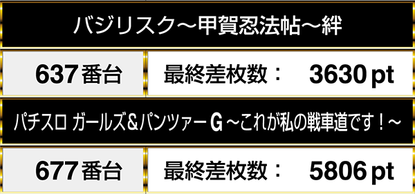 最終的なデータでは、677番台の『パチスロ ガールズ&パンツァーG~これが私の戦車道です!~』が5000ptオーバーを記録。