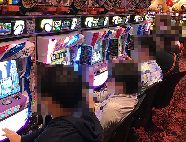 確認時は8台がフル稼働であり、楽しそうに遊技をおこなう姿が何台にもわたって並ぶ光景を目にしている。