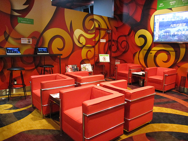 ホール内には、雑誌やマンガ、タブレットが置かれたレストコーナーがあり、休憩中まで楽しく過ごせる設備が整っていた。