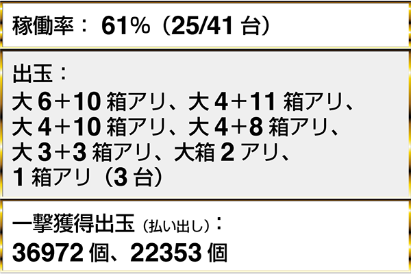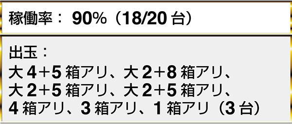 ・『P牙狼冴島鋼牙』の5台以上の出玉が3箱を上回る