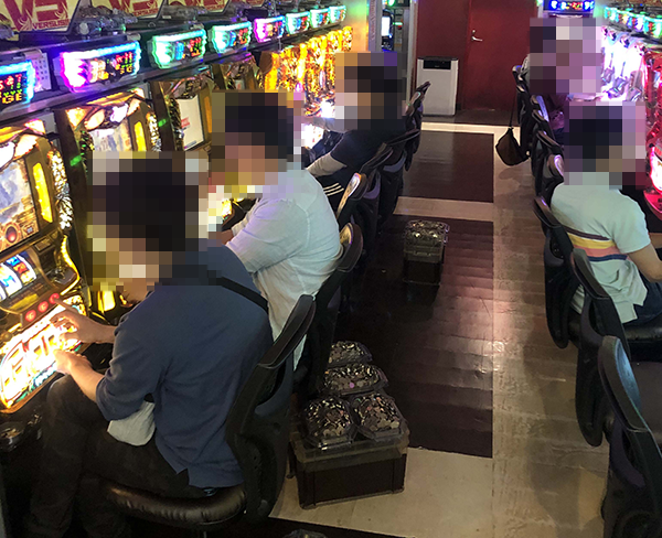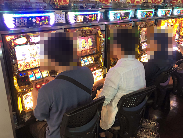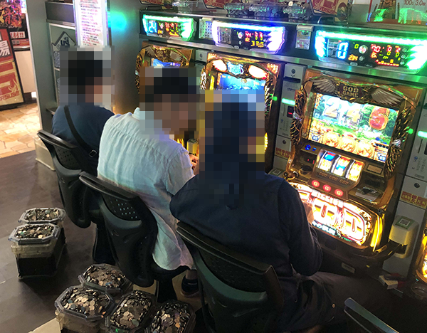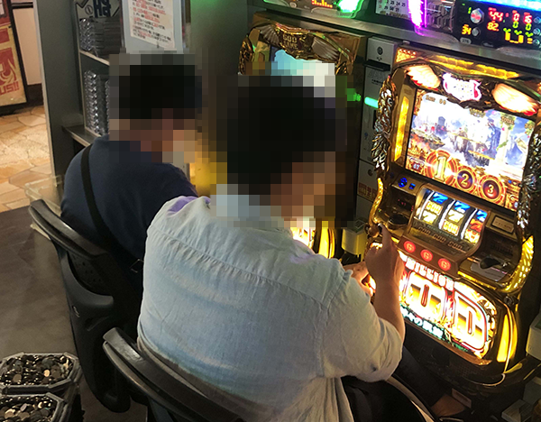 また、ゲーム数があまり伸びていない空き台に座り、期待を持った様子でレバーを叩きはじめる姿も目にしている。自分が入店したときから着席していたプレイヤーと談笑する場面もあり、みていて明るい雰囲気が感じられた。