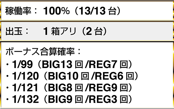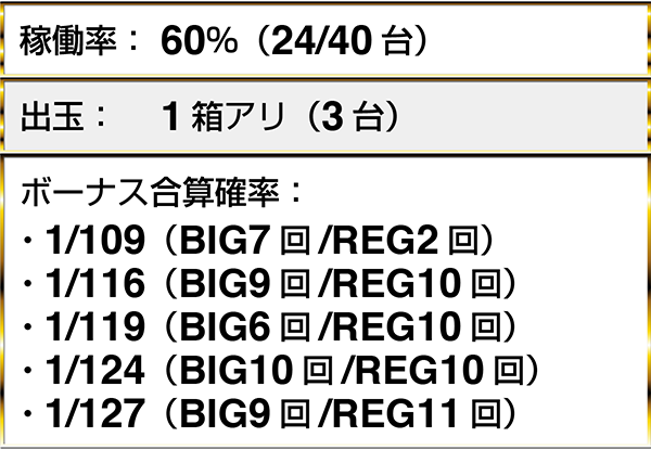 ・『ゴーゴージャグラー』の5台がボーナス合算確率1/130以上