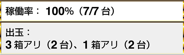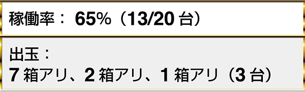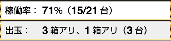 『アナザーゴッドハーデス-奪われたZEUSver.-』や『バジリスク~甲賀忍法帖~絆』など、3機種以上で2箱を上回る出玉を獲得しているプレイヤーを目にした。
