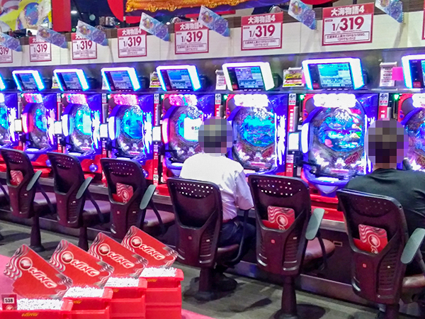 14時ごろの4円パチンコを見てみると「ぱちんこCR真・北斗無双」や「CR大海物語4」が盛況の様子。機種のポテンシャルを上手く発揮するプレイヤーを確認している。