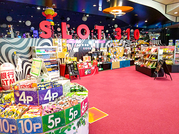 景品コーナーには幅広い銘柄のお菓子やドリンクなどが並んでおり、多くのプレイヤーから注目を浴びていた。