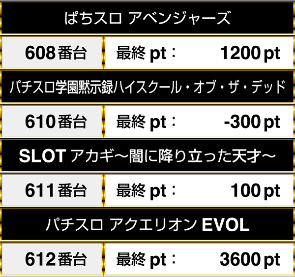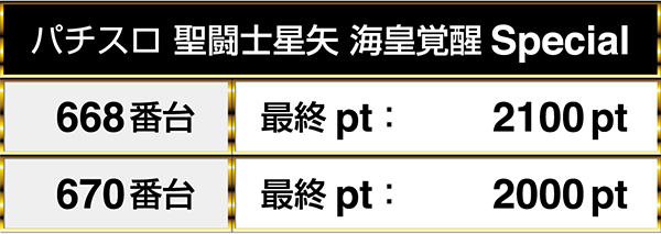 『パチスロ 聖闘士星矢 海皇覚醒Special』は3台中2台がプラスptを記録し、どちらも2000pt以上。
