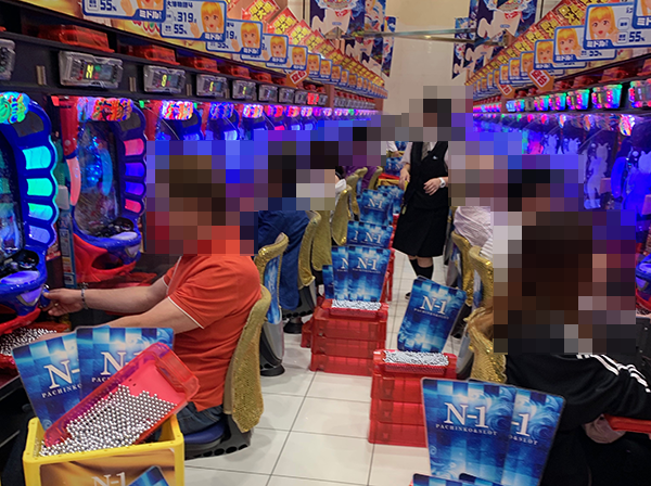 遊パチコーナーや羽根モノコーナーなど、さまざまな場所で華やかなシーンを目撃。