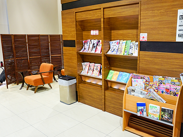 同店にはレストスペースが完備されており、雑誌や新聞を読みながらのんびりと休息をとることができる。