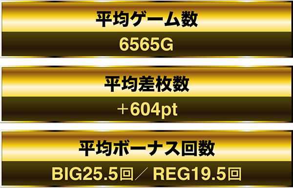 最終的な平均ゲーム数は6565Gで、平均ボーナス回数は45回。データからも、長いあいだプレイヤーに支持されていたことがうかがえた。
