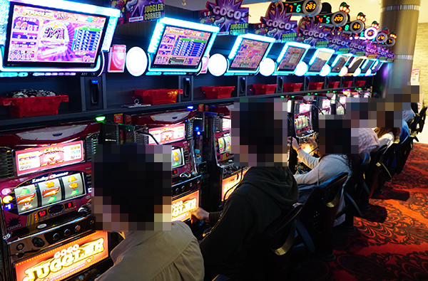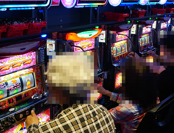 ジャグラーシリーズ全体が盛り上がり、どのシマをみてもプレイヤーの笑顔が黄金級の輝きを放っていた。