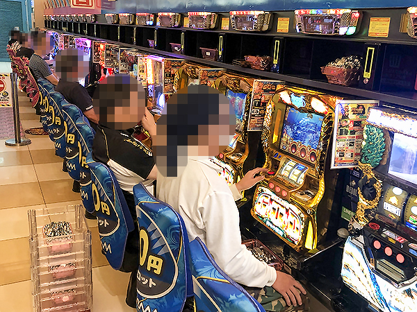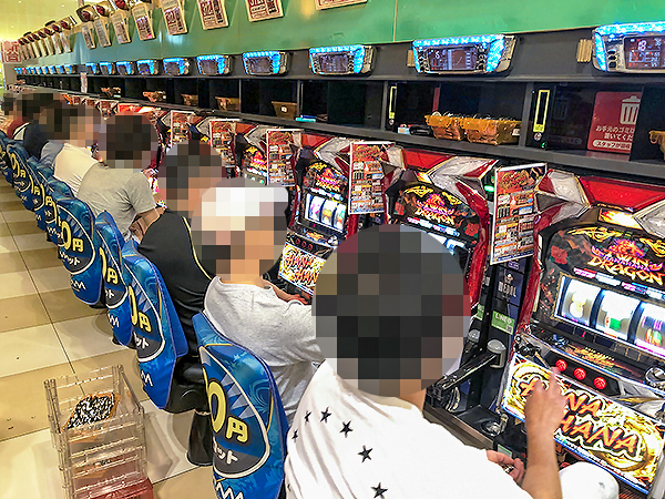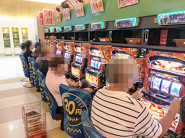 20円パチスロに目を移すと、「ツインドラゴンハナハナ‐30」や「ハナハナ鳳凰-30」で理想的な展開を迎えたプレイヤーがあちこちで見られ、シマ全体が微笑ましいムードに包まれていた。