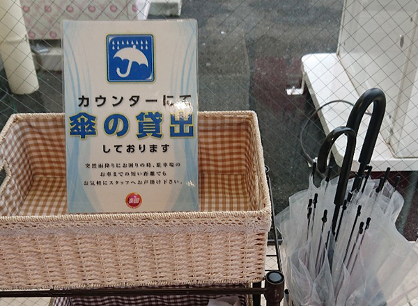また、カウンターで傘を貸し出していたことも好印象であった。