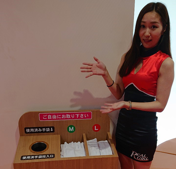 店内をまわっていると、自由に使える遊技用の手袋を発見。MサイズとLサイズがあり、男性と女性のどちらでも使えるといった印象を受けた。