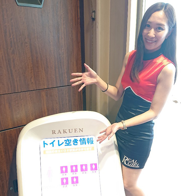 トイレの空き状況が表示されたモニターも設置されている。並ばずに混み具合をチェックできることも、うれしいポイントといえるだろう。