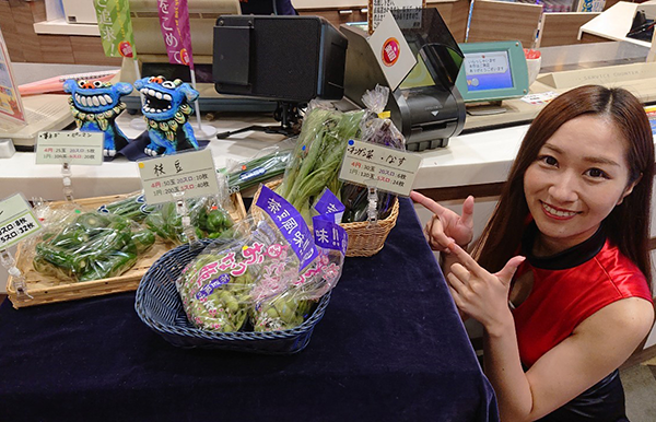 カウンターの前に、ナスや枝豆などの夏野菜が並んでいたことも興味を持ったポイント。安厘ちゃんも笑顔でチェックしていた。