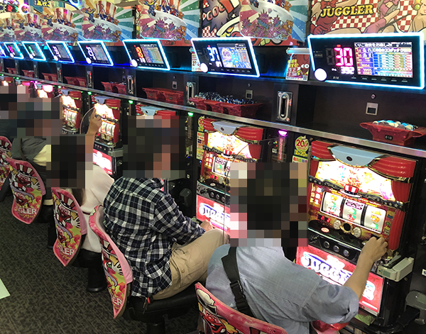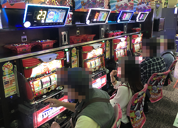 さまざまな機種が楽しまれているホール内において、とくに盛り上がっていたのはジャグラーシリーズ。