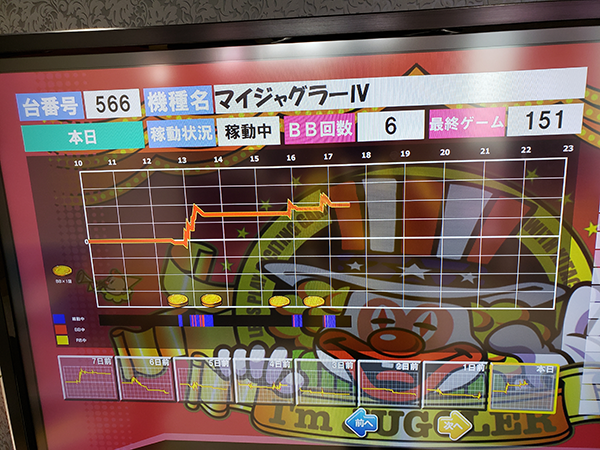 店内にある大きなデータ表示器を使って、グラフをチェックしていきます。