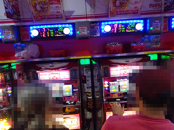 ジャグラーシリーズが集められたシマに設置されており、確認時に着席していたのは3人。大活躍をするプレイヤーが満足そうにストップボタンを押す姿も印象的だ。